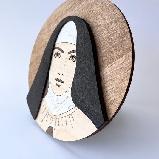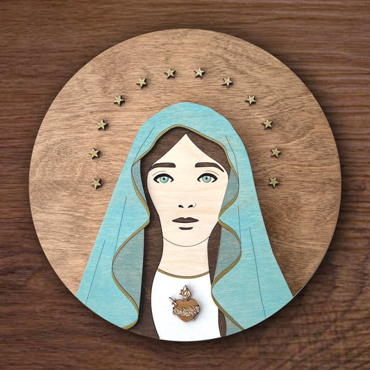 Blessed Virgin Mary Portrait - Round Wood Sign