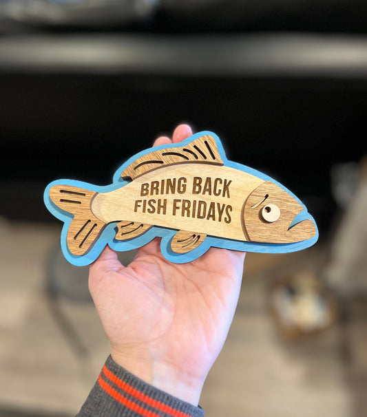 Bring back fish Fridays - Wood Fridge Magnet, Catholic Home Decor