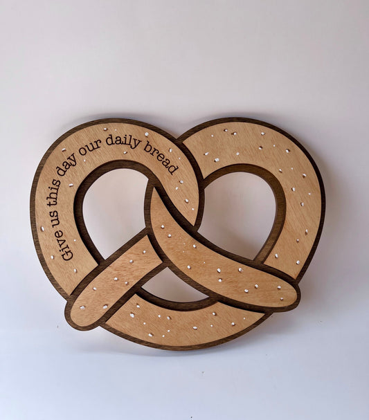 Our Daily Bread Pretzel - Wall Wood Sign, Catholic Home Decor