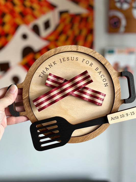 Thank Jesus for Bacon - Wall Wood Sign, Catholic Home / Kitchen Decor