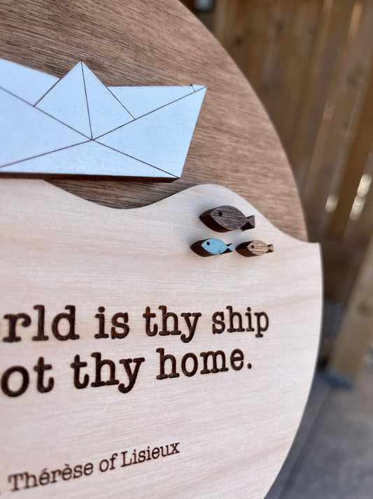 The world is thy ship and not thy home - St Thérèse - Round Wood Sign, Catholic Home Decor