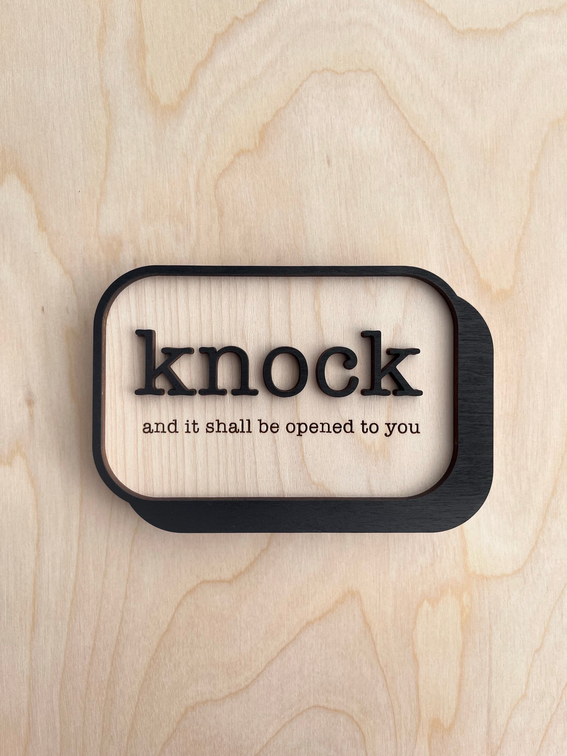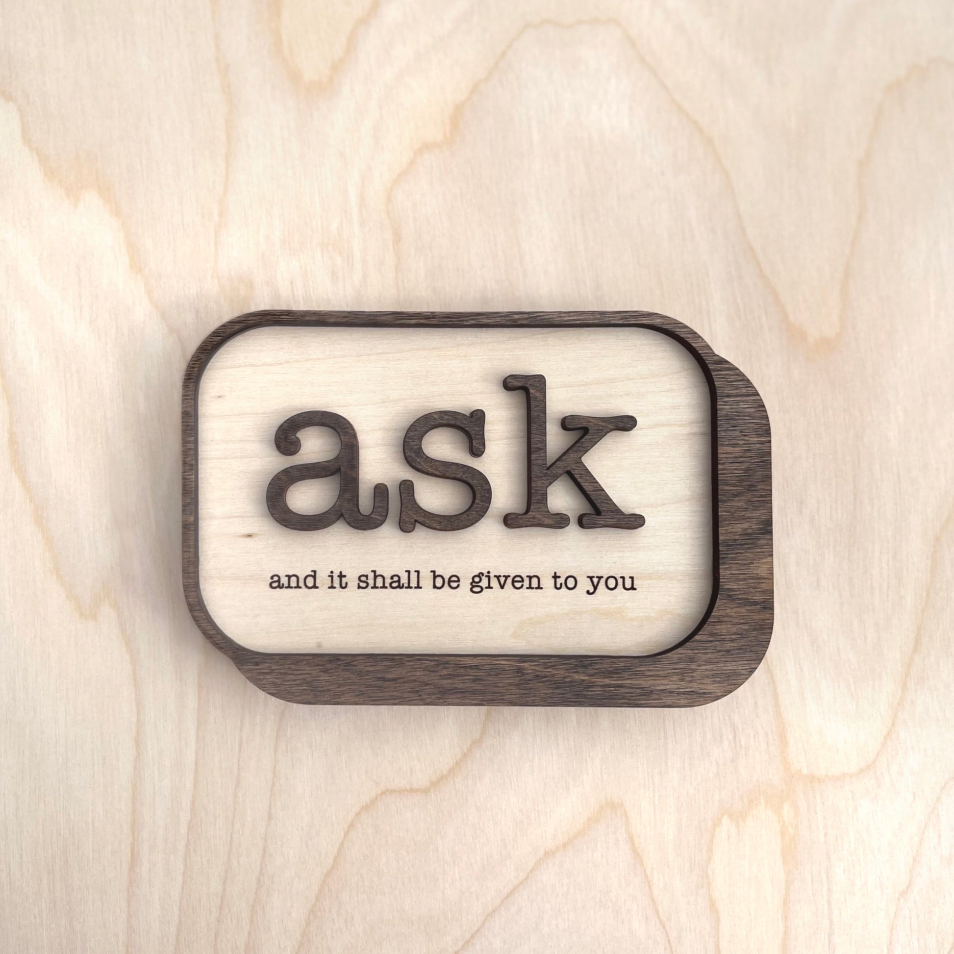 ”Ask, Seek, knock” Wood Magnet / Stand Combo